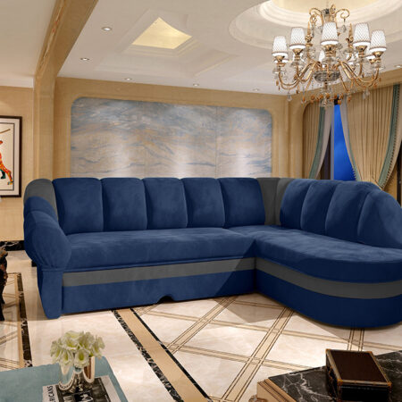 Rohová sedačka s rozkladom a úložným priestorom Belluno P – tmavomodrá / tmavosivá