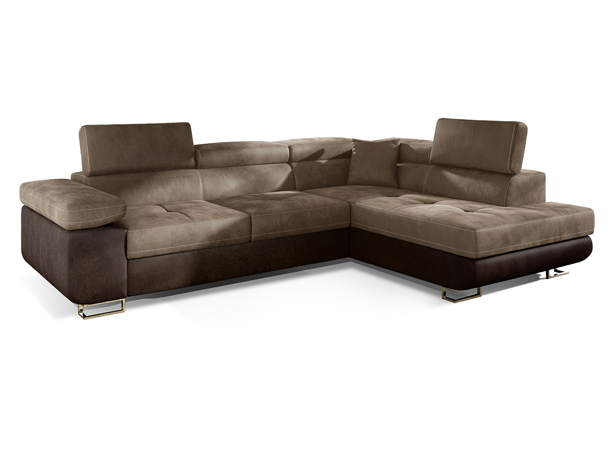 Rohová sedačka s rozkladom a úložným priestorom Almero P – hnedá / tmavohnedá