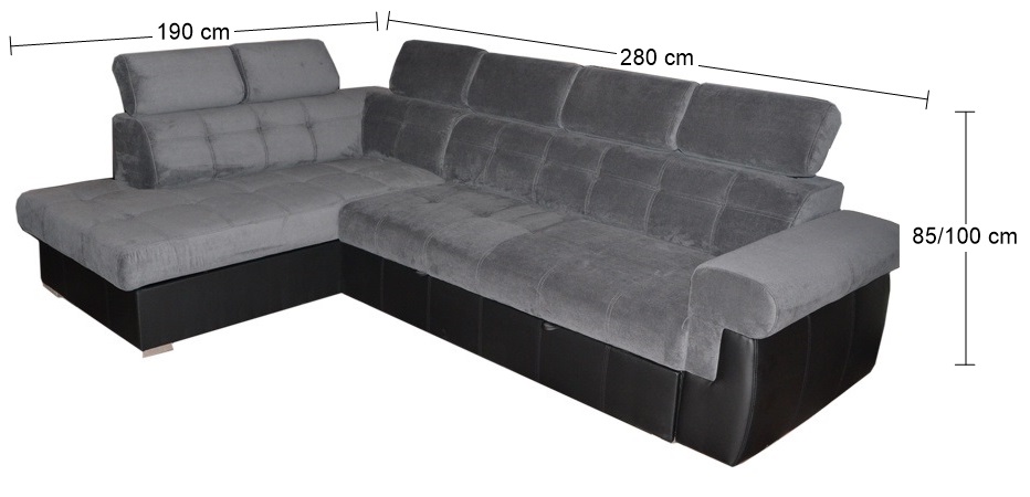 Rohová sedačka ATLANTA L je rozkladacia sedačka s úložným priestorom v kombinácií mäkká sivá látka / čierna ekokoža. Sedačku možno objednať v pravom aj ľavom prevedení. Farebné prevedenie si môžete vybrať z obrovského množstva odtieňov látky aj kože.