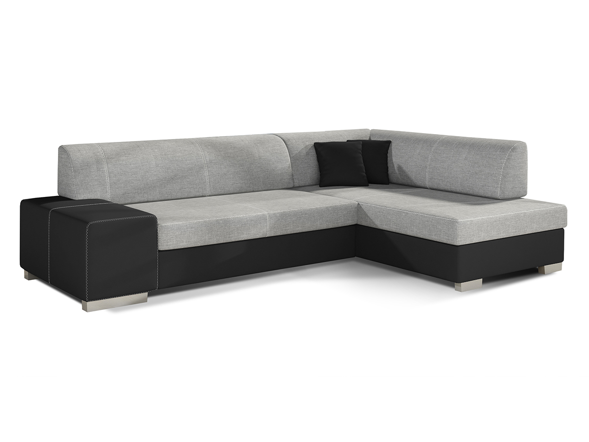 Rohová sedačka s rozkladom a úložným priestorom Ferol P – svetlosivá (Sawana 21) / čierna (Soft 11)