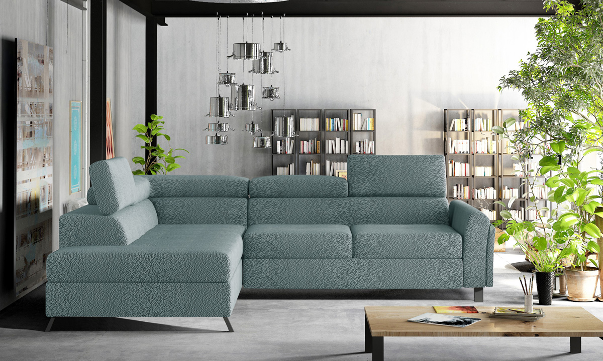 Rohová sedačka s rozkladom a úložným priestorom Korense L – mentolová (Solar 70)