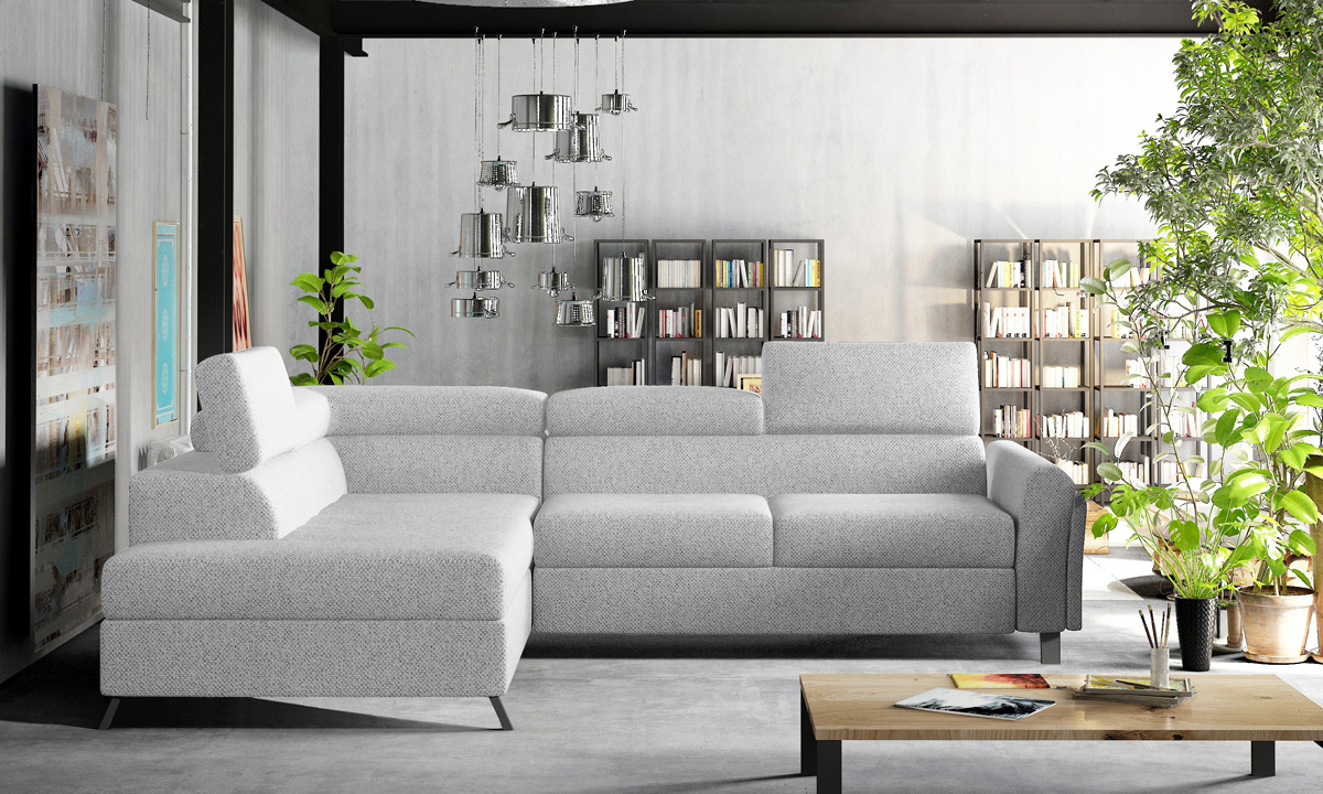 Rohová sedačka s rozkladom a úložným priestorom Korense L – svetlosivá (Grande 81)