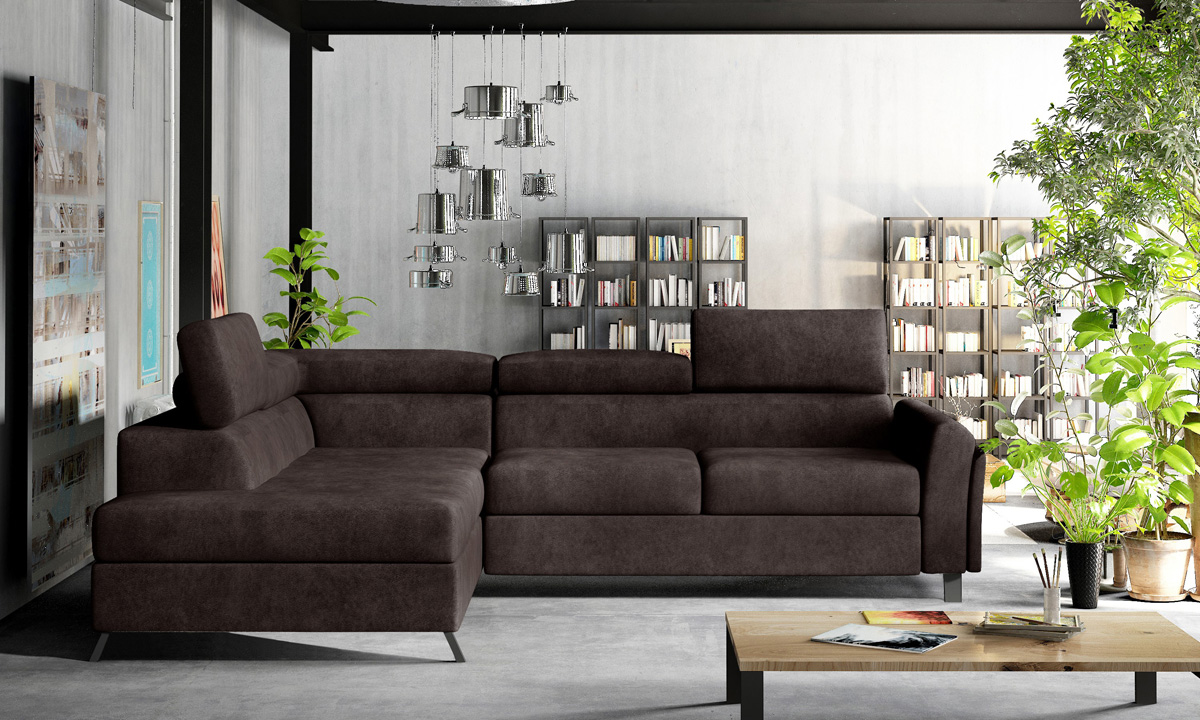 Rohová sedačka s rozkladom a úložným priestorom Korense L – tmavohnedá (Dora 28)