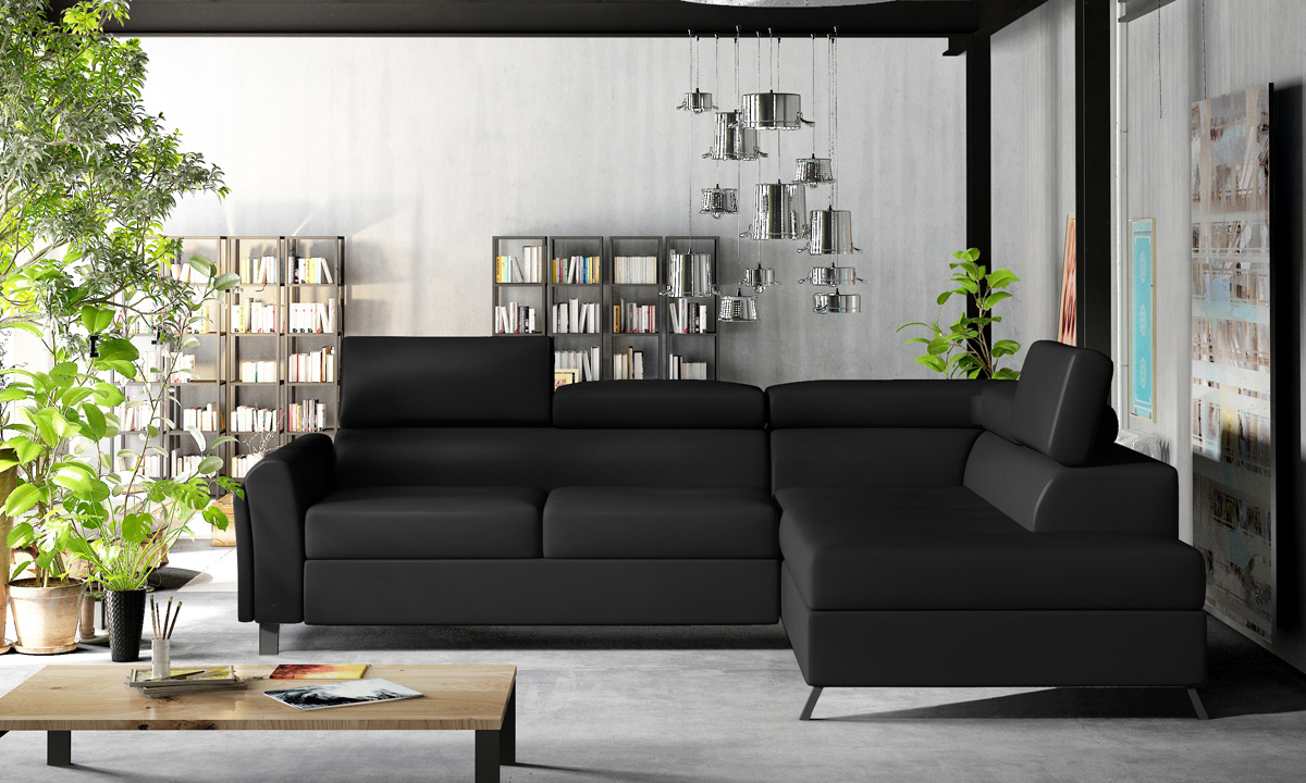 Rohová sedačka s rozkladom a úložným priestorom Korense P – čierna (Soft 11)