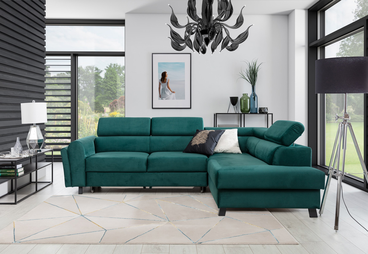 Rohová sedačka s rozkladom a úložným priestorom Korense P – tmavozelená
