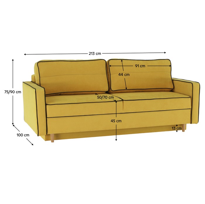 Rozkladacia pohovka BERNIA okamžite zaujme svojím moderným dizajnom a praktickým využitím. Stane sa dominantným prvkom vášho interiéru a poskytne vám maximálne pohodlie pri každej chvíli oddychu. Vďaka sviežej žltej farbe doplnenej jemnou čiernou líniou pôsobí štýlovo a elegantne,…
