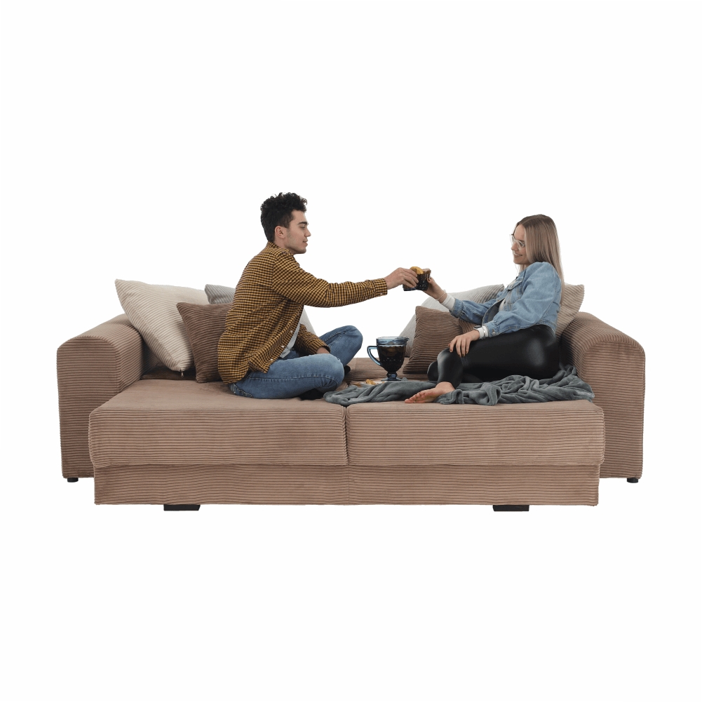 Rozkladacia pohovka s úložným priestorom Gilen Big Sofa v elegantnej kombinácii svetlohnedej, béžovej a krémovej farby je ideálnym riešením pre moderné interiéry. Táto pohovka od značky KONDELA ponúka nielen štýlový vzhľad, ale aj praktické funkcie, ktoré ocení každá domácnosť.